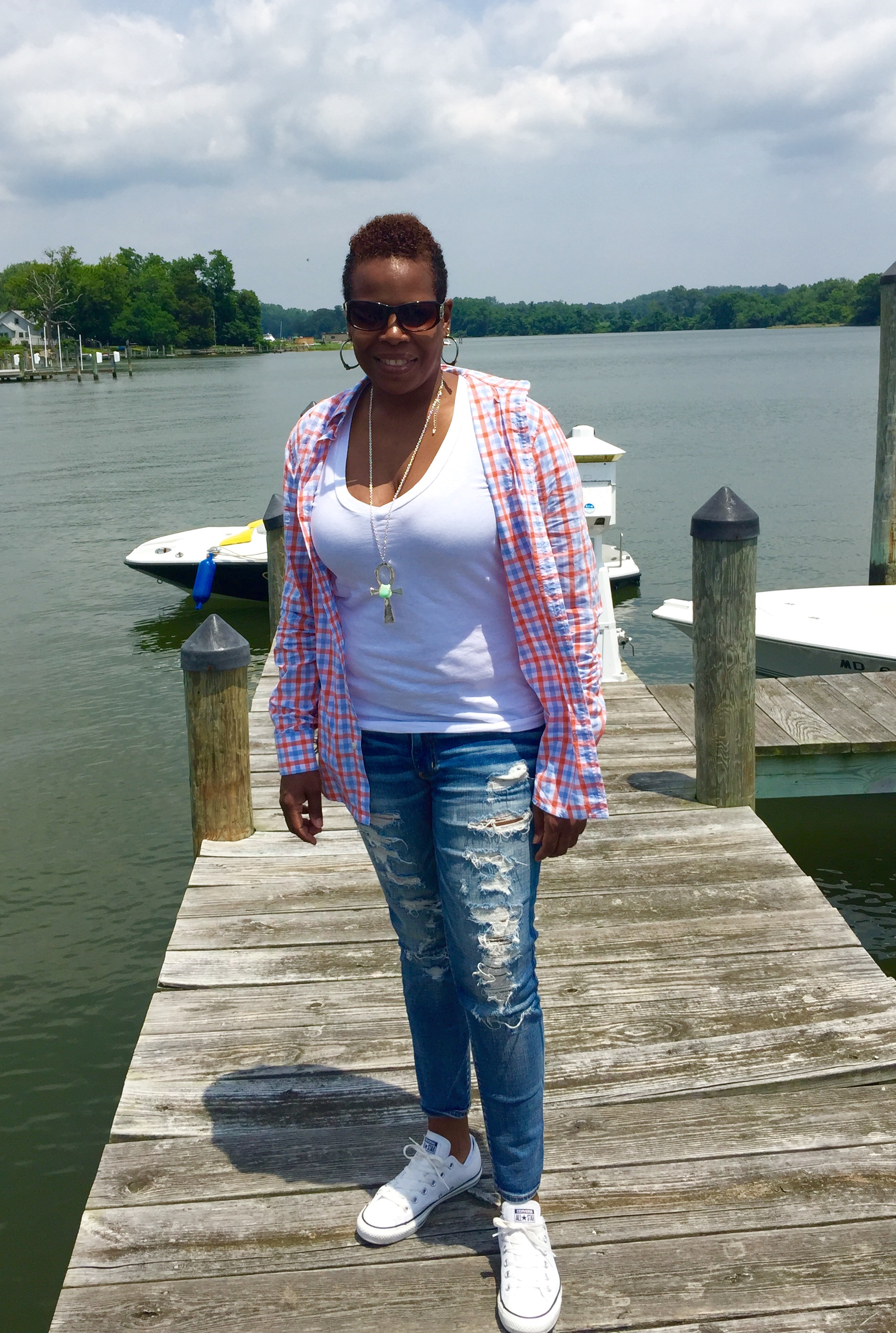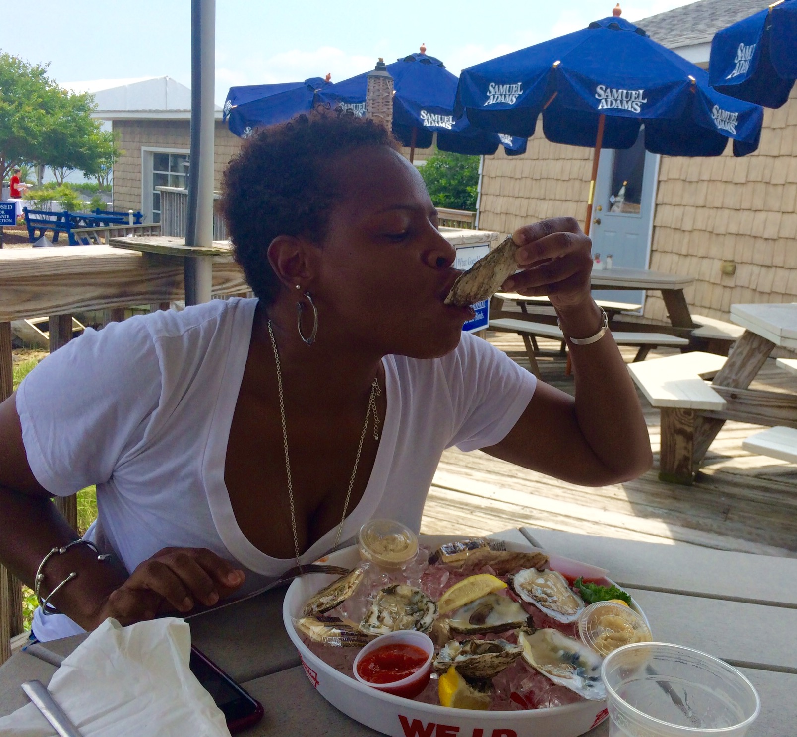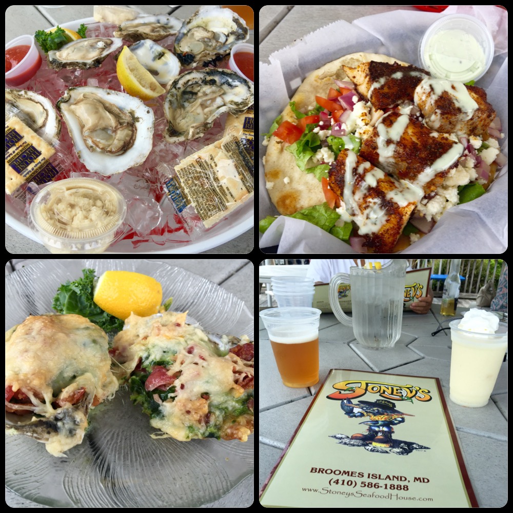Speedboating12Of course, a journey such as this MUST include a foodie moment. Even on the high seas. If it doesn’t, it’s not complete for me. Lol. Our destination was Stoney’s in Broomes Island, MD, which is a seafood restaurant right on the river. And, it did not disappoint. After perusing the menu, I decided I just had to get the oysters, which were fresh and smooth. On the menu was a Rockfish Gyro, which was a cause for pause. My inside foodie voice reminded me of my concern of ordering rockfish because of the potential to be overcooked and bland. It was amazing. Seasoned perfectly (almost like blackened) with all of the gyro accoutrements of soft pita bread, tomatoes, cucumbers, and tzatziki sauce. A nice representation of Mediterranean meets Maryland. And, we couldn’t resist ordering the onion rings that previously passed us by (eye hustling) on their way to another table. Other delights were the Oyster Rockefellers (baaaaaacccooonn) and the Mussels. All washed down with the “aaaaaaaaaaaa” of a hot days cold Speedboating2brew and piña coladas that included a nice kick of rum and dollop of whip cream. The funny moment was our server who noticed the last name of Goddess G and was determined to find out if they were related. She continued going back and texting her relatives to find out, especially after finding out Goddess G’s family was from the same area. She was too cute. Although I felt, we were having a Rachel Dolezal moment. Hahahahaha… Actually everyone at the restaurant was just very nice and welcoming. That’s really important for us Black folk if you know what I mean.
