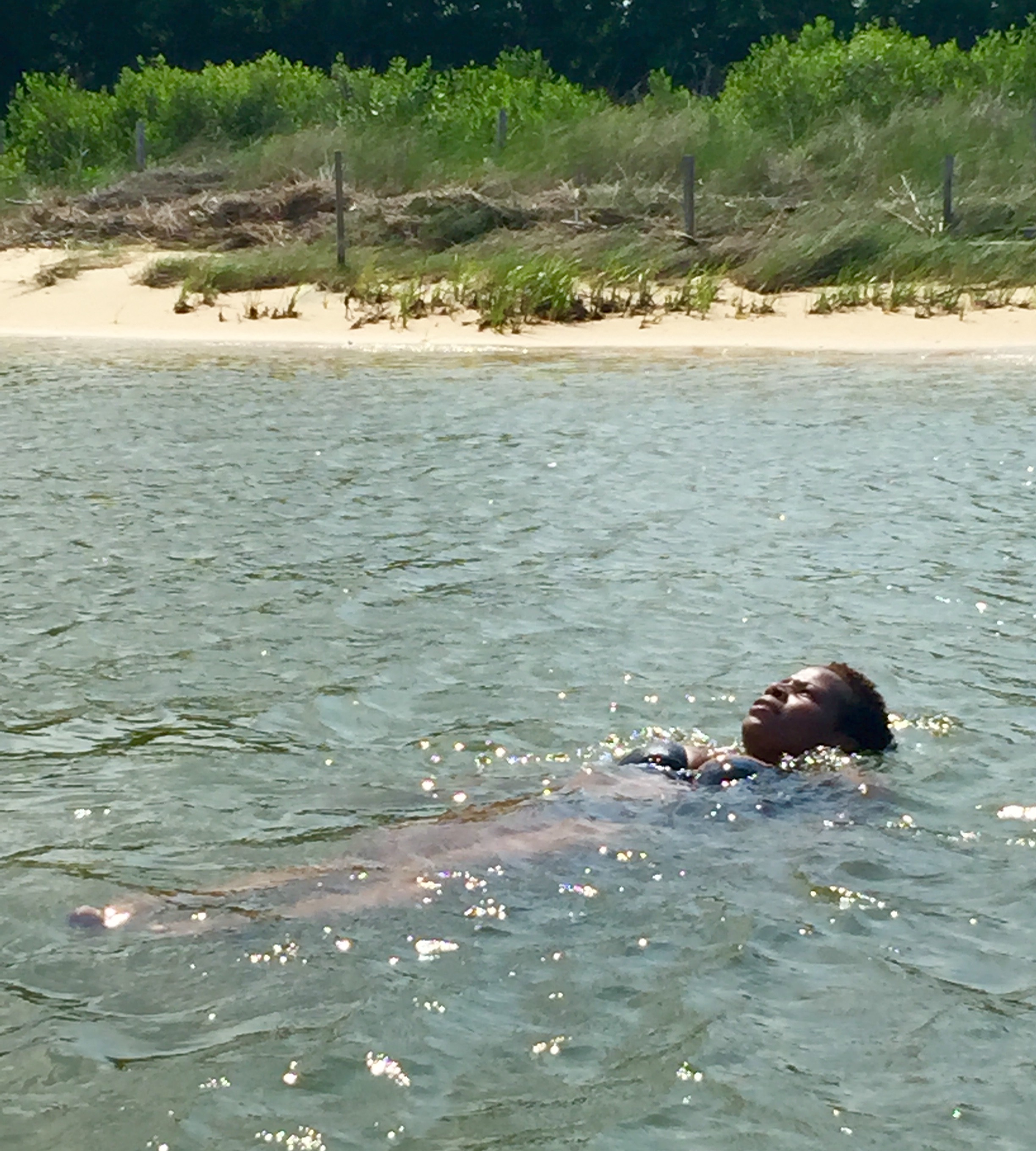 Speedboating6My “Fast and Furious” moment was interrupted as Goddess L’s previous piña colada indulgence and never knowing how it’s going to turn out seal breaking had to be tended to. And, there was a little beach like area we made our way to so the anticipated relieving could take place. Why did they tell me the water was warm (not for that reason)? Sidebar: I hunt for warm water encounters like an addict always seeking that next ultimate fix. I proceeded to undress down to my in my head bikini and got to bathe in the river. I know. I know. You’re probably like “Ewwww you got in that nasty water.” Yep! I did. And, I’ve done it in the Bay too. Addicts don’t care. It’s all about the fix. And, the fix was perfect. I swear it was Speedboating5what my mind, body, and soul required. I glided on my back and just relaxed and absorbed the warmth and comfort of the water. At one point, I ramdomly popped up and declared “I’m at the beach”. Well, that’s what it felt like for me. And, we all busted out with laughter. But, that was my moment of creating a beach moment even on the Patuxent. No one else was as enthusiastic as I was to get into my dreamlike beach for pleasure, but I’m sure they would admit it was a nice moment for us all to just STOP and relax. I must admit it was quite healing for me. And, a couple of days later I felt like I had experienced a cleansing.
