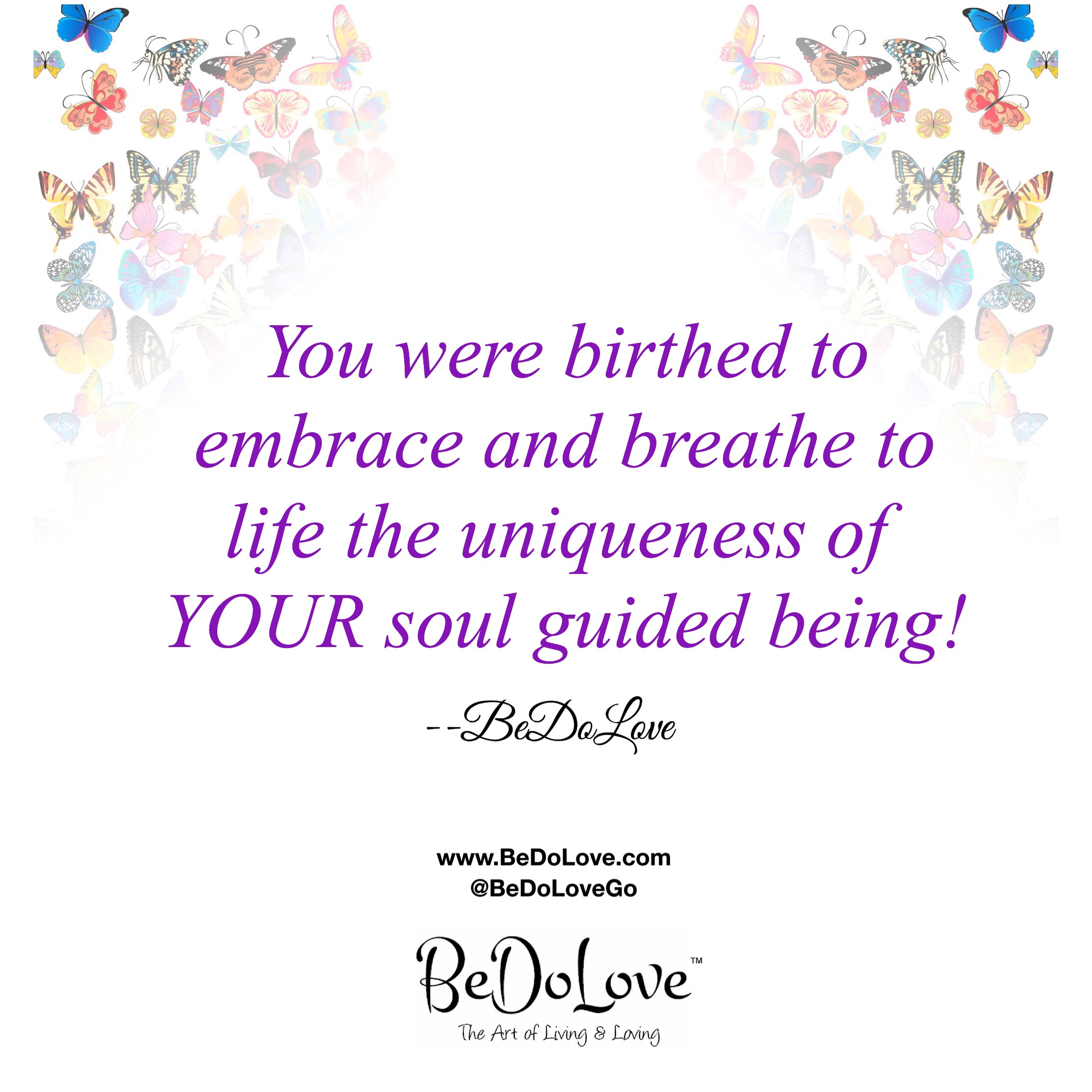 You were birthed to embrace and breathe to life the uniqueness of YOUR soul guided being. Allow no one to put you down and falsely influence who you are not to be. And, know that God will always move people in your path best suited to feel and appreciate your vibe and beingness. So pause, be still, and BREATHE anytime you require recalibrating. Trust YOU! Be YOU! Do YOU! Love YOU today and ALWAYS!!! Because, your are SWAGGALICIOUSLY PURE DOPENESS! Peace! Namaste! #BeDoLove #FindYourZen #JuicySweetSpot #NewMomentNewOpportunity #BeDoLoveYourSoulFULLPurpose