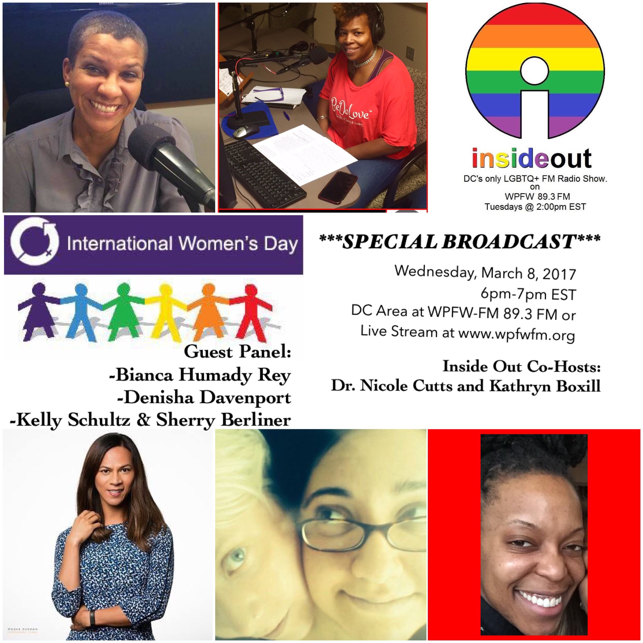 Please Tune in Tonight: Join INSIDE OUT LGBT Radio live TONIGHT, Thursday, March 8 for a special “International Women’s Day” show from 6pm-7pm EST. You can catch the show on DC’s WPFW-FM at 89.3 FM or live stream ANYWHERE from your computer, phone or tablet at http://www.wpfwfm.org. You can tune in while at work, driving, getting your hair done, walking through the mall, preparing dinner…