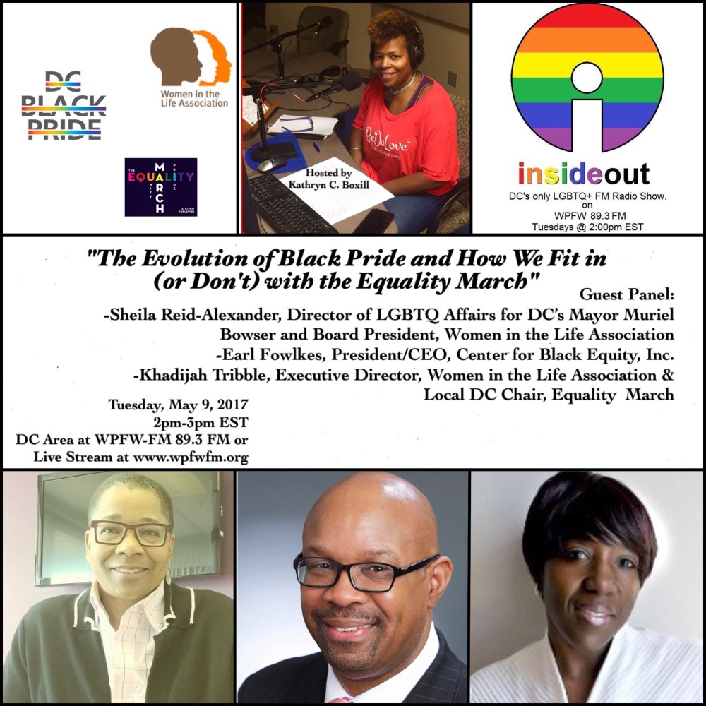 We thank Sheila, Earl and Khadijah as they personally and professionally continue to be consistent stands for the LGBTQ community. And, thank you for visiting Inside Out and providing your insight, and beautiful and fun energies. Please visit their sites for upcoming events and how to participate. Each have workshops, seminars, marches, and/or sources of entertainment coming up this week and beyond. http://womeninthelife.org/. http://www.dcblackpride.org. http://www.equalitymarch2017.com.