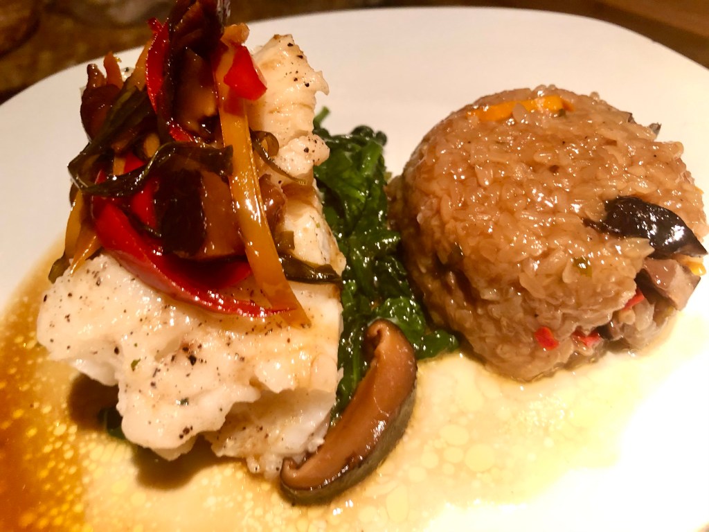 For the Hong Kong dish, instead of topping the dish with the raw scallions and ginger, I sautéed them (along with peppers and dried shiitake mushrooms) in the sauce. I cooked the fish in butter and put the top on to steam. https://www.food.com/recipe/hong-kong-style-sea-bass-254415