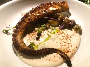 ~Charred Spanish Octopus – almond ajo blanco, grapes, cherry tomato vinaigrette