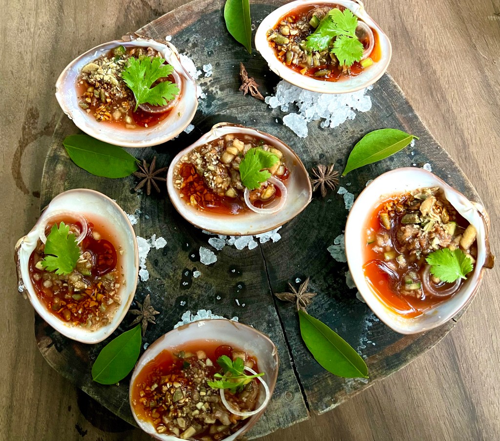 ~CHOCOLATE CLAMS – Cucumber + onion + pumpkin seeds + house sauce.